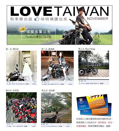 秋季樂出遊‧哈特佛讚出來~ 【11月FB活動得獎名單公布】