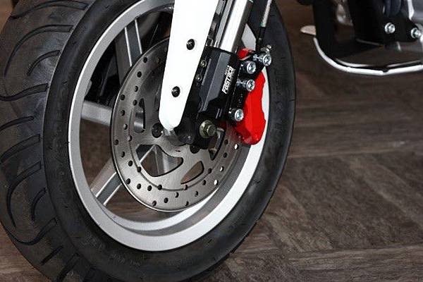 現在的高級重車幾乎都會配置對四卡鉗。新款小雲豹MINI足感心,很有誠意的也裝上了這款高級重車的標準配備,真是便宜又大碗。光是多一組對四卡鉗的配備成本,就要高出5-6000元。如果不是有心的車廠,是不可能這麼做的。光是改版後的前倒叉跟對四卡鉗的成本,就足以讓新款小雲豹的CP值提高一倍以上。單以7萬多元的車款來說,真的是沒有比這個更優的選擇。