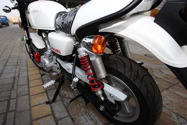特別是對重車來說,如果只以速克達的標準來要求,也就太遜了。當然要使用雙槍避震啊,它的好處是什麼呢?雙槍避震是同時處理過彎的壓力,或是由坑洞傳至輪胎的衝擊力。這個時候雙槍避震會比單槍穩,因為它是由左右兩支避震,平均負擔車身與後輪位移的作用,所以比單槍避震更能營造出穩定又舒適的操縱感。唯一的缺點就是,裝兩隻要多花錢。XD