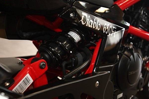 當然也騙不了人,雙槍避震並不是目前最好的選擇。現在最高級的重車使用的,是中置多連桿單槍避震,比方我們的哈特佛惡魔650。因為避震器畢竟是消耗品,雙槍系統的避震單體通常裝在後輪的兩側(不然要裝哪裡),通常靠近後輪軸。如果負擔太大,懸吊系統上下擺動時,避震器裡的阻尼會幾乎跟搖臂的擺動幅度一樣大。當這樣的壓力不斷重複時,阻尼活塞就會嚴重消耗避震油,使吸震能力變得很差,很容易造成避震器失效。而只使用一支中置避震器,加上多連桿與車身的配置,可以減少避震器受到的壓力。